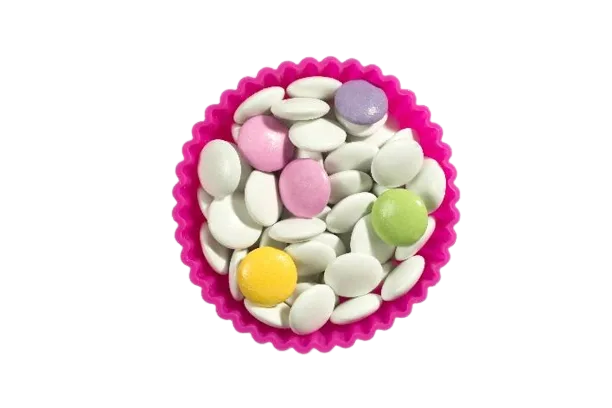 Whether hard or soft-panned, sugar-shelled confectionery benefits from bright white layers around the centre to provide a clean, consistent base on which to layer additional colours. Titanium dioxide is very effective in panned confectionery due to its high concentration, bright white colour, and low taste and texture impact. Without a whitening layer on top of the centre of the sweet, the outermost layer of colour is often less vivid, because it must overcome the base colour. Titanium dioxide or sugar-free TiO2 replacements can also add whiteness to panned and other confectionery applications where desired.
