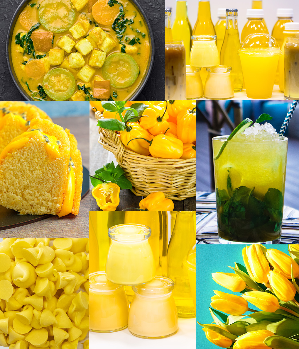 This bright hue could pair with flavour profiles such as lemony citrus, bright spicy habanero, tropical pineapple, tart mustard, sweet butterscotch, ripe banana, rich curry, and more.