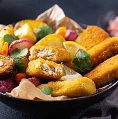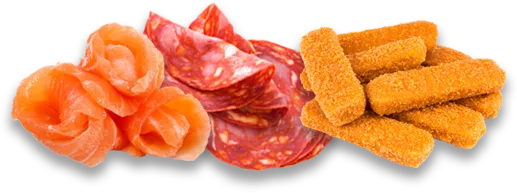 Orange is an important visual cue for raw salmon and many spicy flavours in breadings or sausages. Colouring foods and natural colour solutions like paprika and natural carotenes can be leveraged to create bold visuals that match animal proteins.